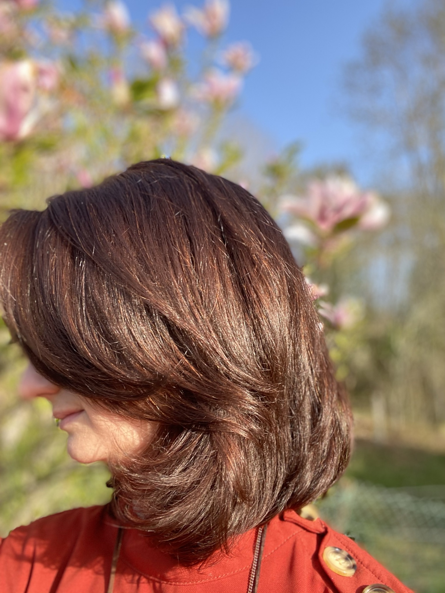- La méthode en une application (1 pose) : Elle est idéale pour celles qui recherchent un effet méché naturel. Sur les cheveux blancs, les plantes créent des nuances claires et tout en transparence, offrant des reflets allant du doré lumineux au cuivré subtil à cuivré acajou intense. C’est une technique qui apporte beaucoup de légèreté et de relief à la chevelure.